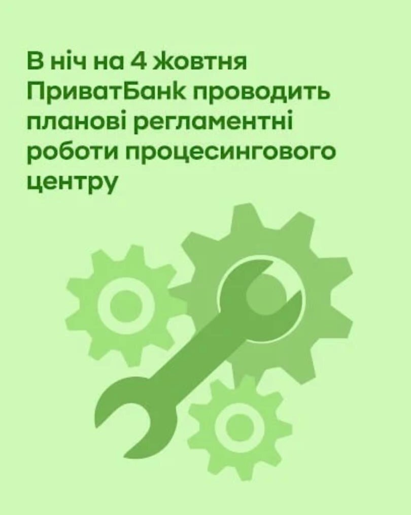 Крупнейший украинский банк "ПриватБанк" в ночь на 4 октября 2025 года проведет плановое техническое обслуживание процессинговой системы, сообщают представители финучреждения.