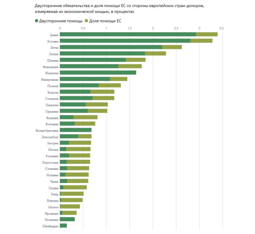 Дания передала Украине весь свой запас артиллерийских систем и начала прямое сотрудничество с украинскими производителями оборонной техники. Страны Южной Европы – Франция, Испания и Италия – сохраняют более крупные оборонные мощности и значительные запасы вооружений, поэтому имеют больше возможностей для продолжения помощи, чем восточноевропейские государства, находящиеся под непосредственной угрозой со стороны России.