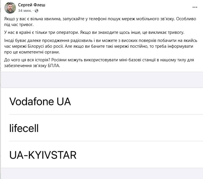 Флеш напомнил, что в Украине официально работают только три мобильных оператора. "У нас в стране есть только три оператора. Если вы находите что-то другое, это вызывает тревогу", - отметил он.