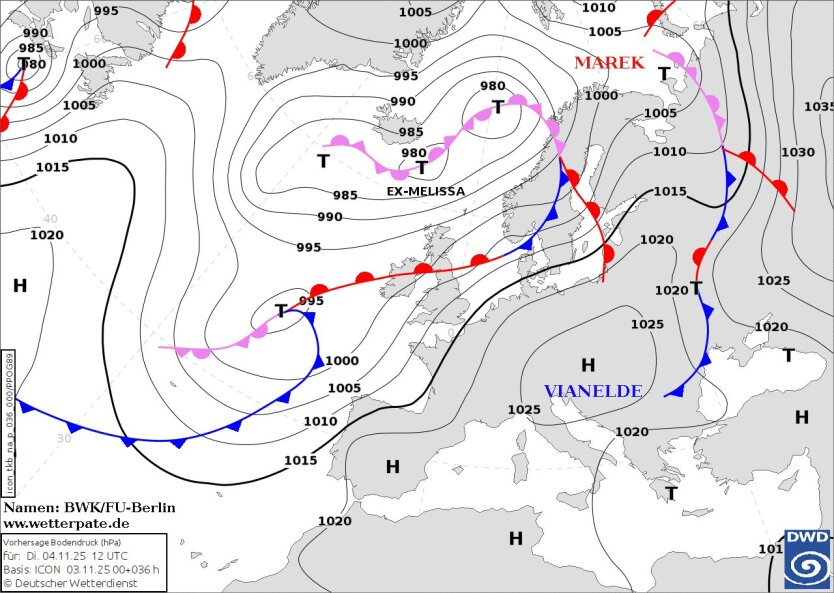 "Вызовет осадки холодный атмосферный фронт (синяя линия с колючками, см. карту внизу). Также небольшие дожди - в Винницкой, Черкасской и Полтавской областях. На остальной территории Украины 4 ноября - без осадков", - предупредила она.