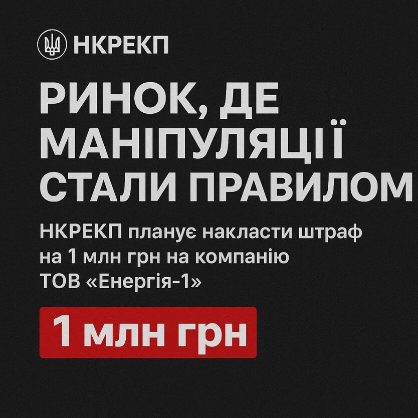 Национальная комиссия по регулированию энергетики и коммунальных услуг планирует наложить штраф в размере 1 миллиона гривен на компанию ООО "Энергия-1", связываемую с бизнесменом Игорем Тынным.