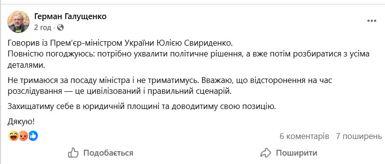Он также прокомментировал реакцию Галущенко на отстранение.