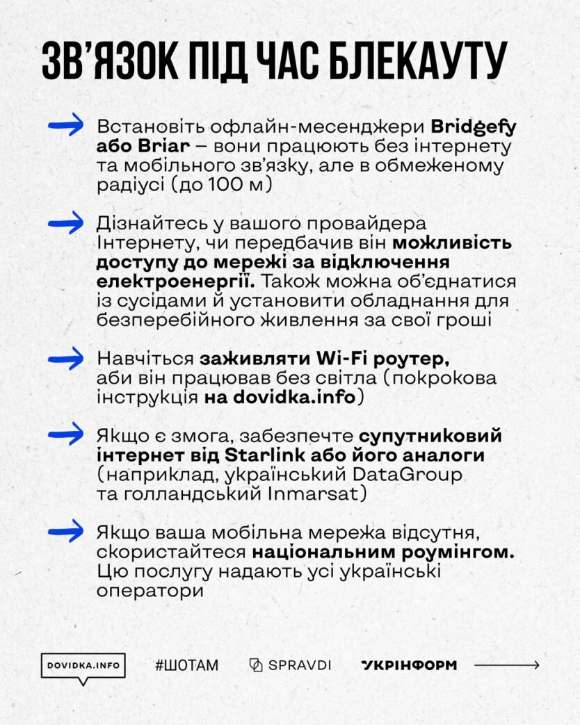 - Если есть возможность, обеспечьте спутниковый интернет от Starlink или его аналоги (например, украинский DataGroup и голландский Inmarsat)