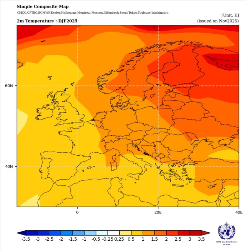 По прогнозу ученых, который они разработали, опираясь на предварительные расчеты мировых прогностических центров (NOAA, ECMWF, CMCC и других), на большей части Европы и в Украине ожидается теплая зима с отклонениями средней зимней температуры на 0,7 – 1,6 градусов выше климатической нормы. Продолжается тенденция тёплых зим, однако это не исключает морозов до -20 градусов.