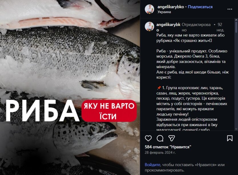 Отдельный акцент Рыбко сделала на рыбе, которая может содержать описторхов – печеночных паразитов. По ее словам, они способны поражать печень человека, а заражение описторхозом связано с употреблением полусырой или недостаточно обработанной рыбы.