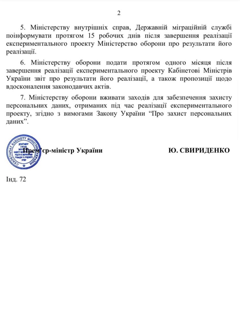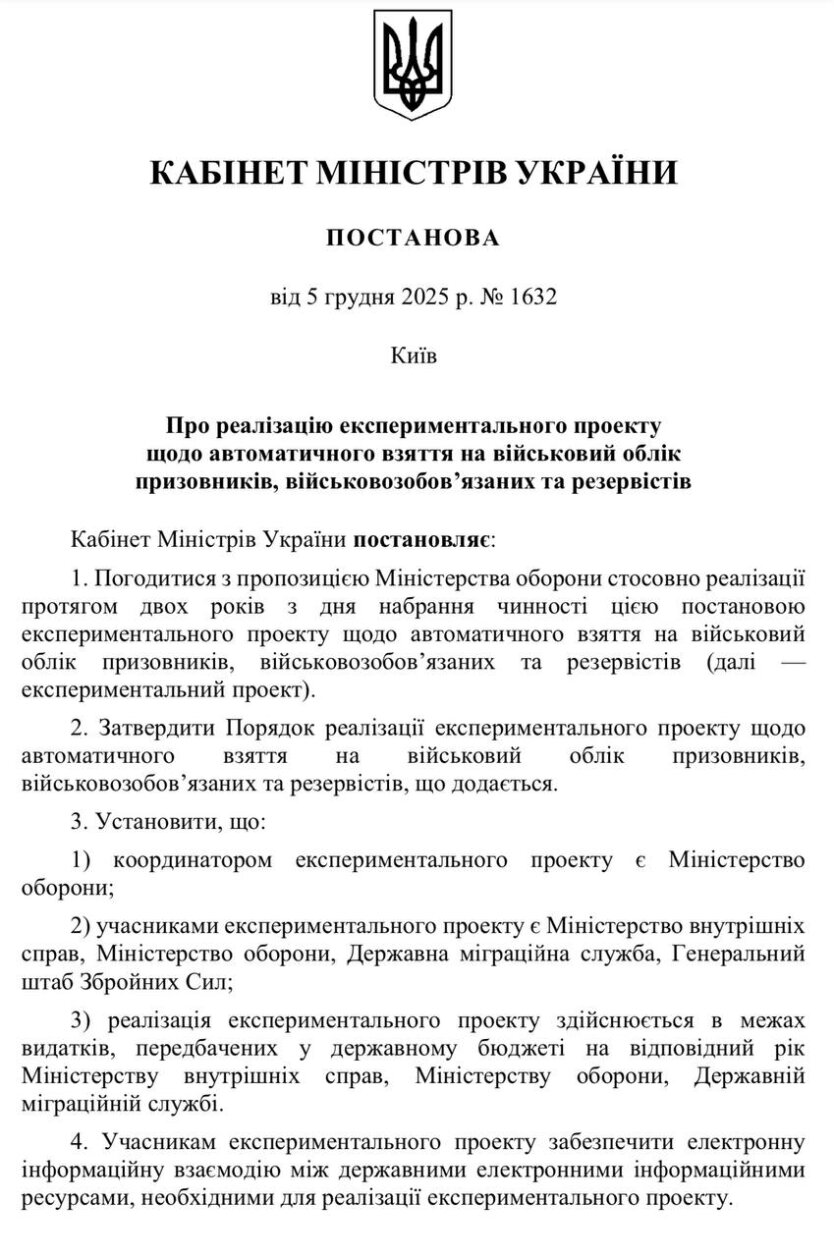 Кабмин утвердил экспериментальный проект по автоматическому взятию на воинский учет призывников, военнообязанных и резервистов.