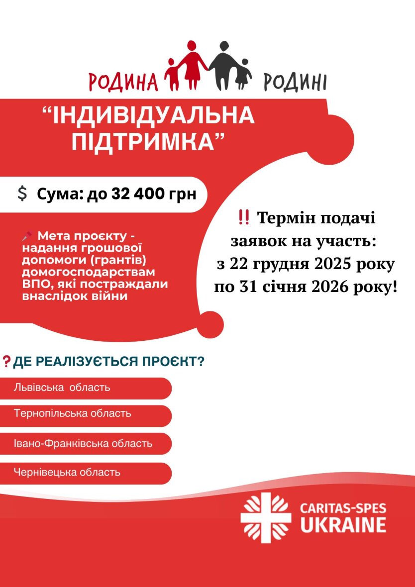 Речь идет о проекте "Семья Семье: Индивидуальная поддержка", подать заявку на который можно до 31 января 2026 года. Программа рассчитана на домохозяйства со статусом внутренне перемещенных лиц (ВПЛ), пострадавшие от войны и стремящиеся улучшить свое финансовое положение.