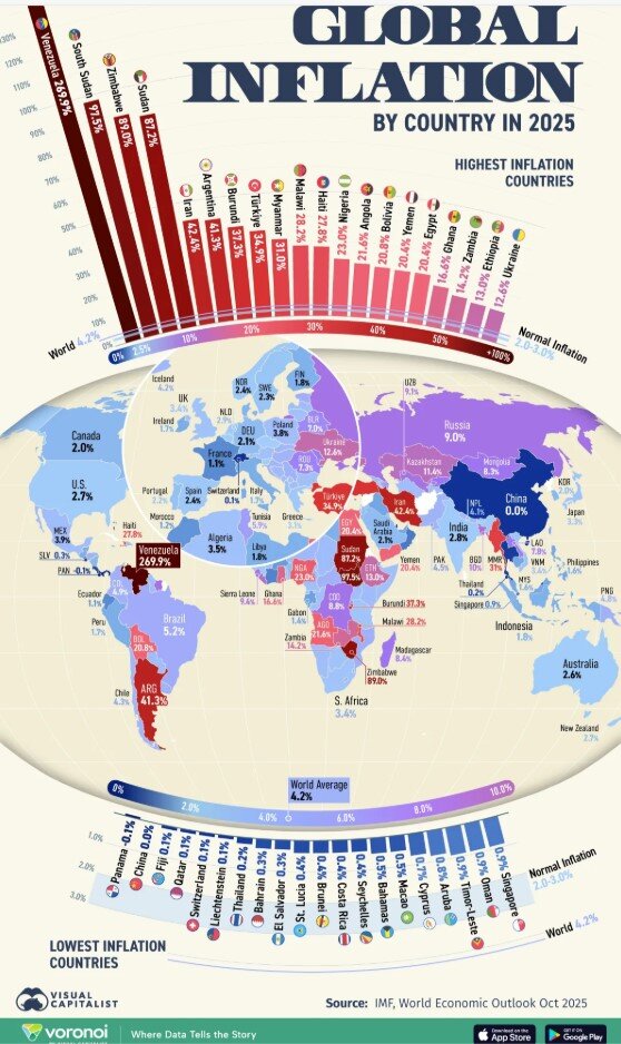 Бесспорным лидером по обесцениванию национальной валюты в мире осталась Венесуэла с катастрофическим показателем в 269,9%. В пятерку стран с самым быстрым ростом цен также вошли Южный Судан (97,5%), Зимбабве (89,0%), Судан (87,2%) и Иран (42,4%).