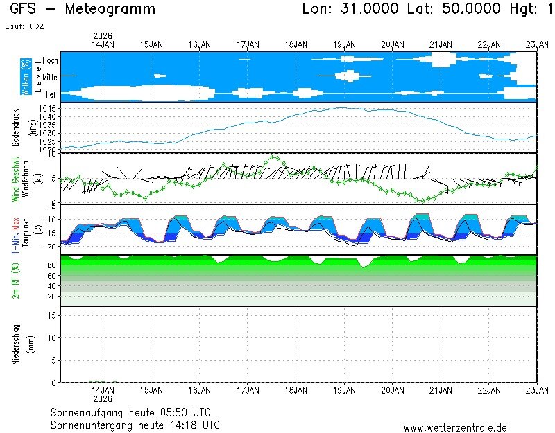 По словам Диденко, надежды на то, что морозы отступят уже 15 или 17 января, пока не подтверждаются расчетами. Графики температур показывают, что холодная воздушная масса задержится над Украиной.