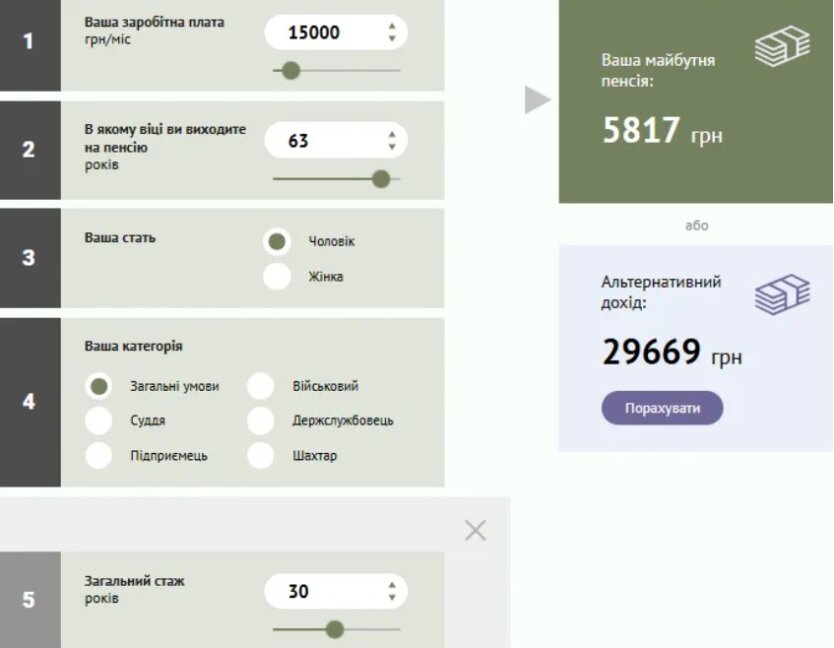 Эксперты смоделировали ситуацию для работника с зарплатой 15 тысяч гривен и 30 годами стажа. Если такой гражданин выйдет на пенсию в 63 года, его выплата составит ориентировочно 5,8 тысячи гривен.
