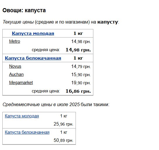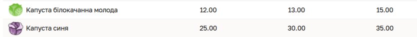 Капуста демонструє більш стабільну цінову картину. Молода капуста в середньому коштує 14,98 гривні за кілограм, причому у всіх торговельних мережах ціна тримається приблизно на одному рівні. Білокачанна капуста обходиться покупцям у середньому в 16,86 гривні за кілограм, з невеликими варіаціями по торговельних мережах - від 14,79 гривні в Novus до 19,90 гривні в Megamarket.
