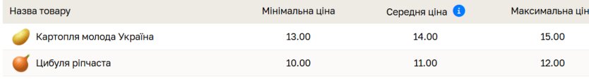 Ринкові ціни на деякі позиції виявляються більш привабливими для покупців. Молоду українську картоплю на ринках можна знайти за ціною від 13,00 до 15,00 гривень за кілограм, що значно нижче супермаркетських цін. Ріпчаста цибуля на ринках коштує від 10,00 до 12,00 гривень, що також вигідніше за магазинні пропозиції.