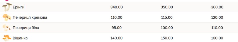 На ринках вони дешевші — від 95 до 110 грн/кг (печериця біла).