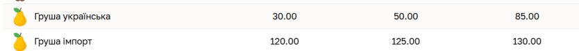 Українські груші також демонструють різницю у вартості. У супермаркетах — 42-66 грн/кг, тоді як на ринках — від 30 до 85 грн/кг. Імпортні сорти коштують дорожче — 120-130 грн/кг.