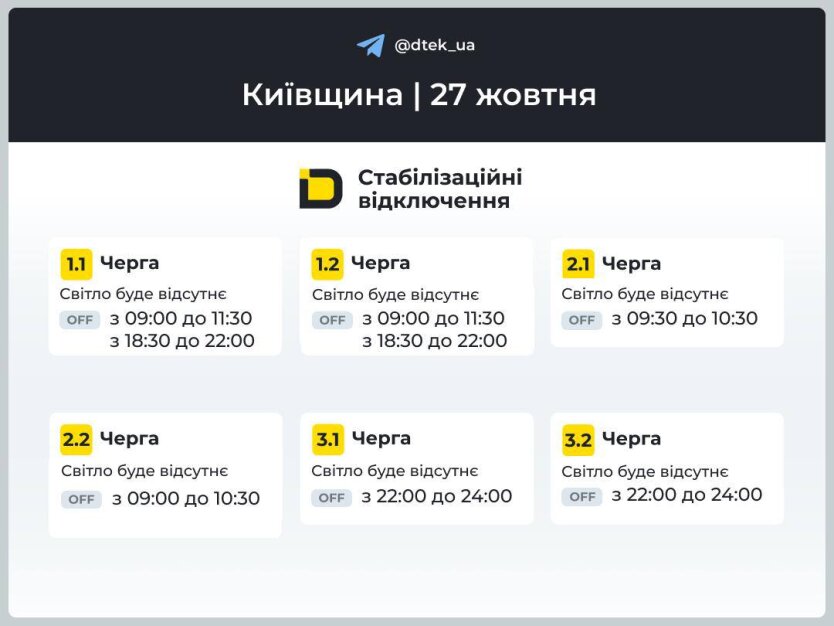 Тим часом у ДТЕК повідомили, що на Київщині за командою Укренерго переходять до стабілізаційних графіків відключень.