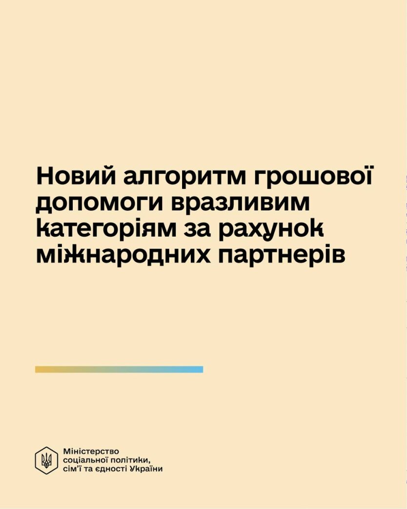 Міністерство соціальної політики, сім’ї та єдності розробило постанову, яку вже підтримав Кабінет Міністрів України. Вона створює єдиний, прозорий механізм співпраці з міжнародними та національними партнерами для надання додаткової допомоги соціально вразливим громадянам.