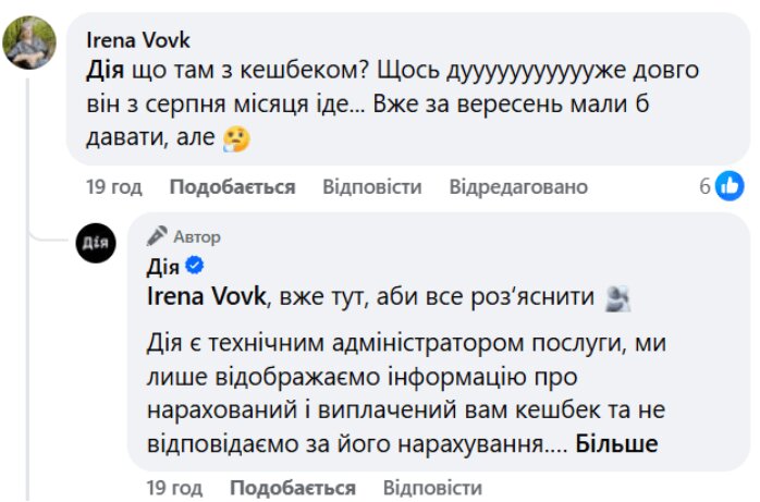 Одна з користувачок, Ірена Вовк, поділилася, що не бачить грошей навіть за серпень, хоча виплати за вересень теоретично вже мали б надійти.