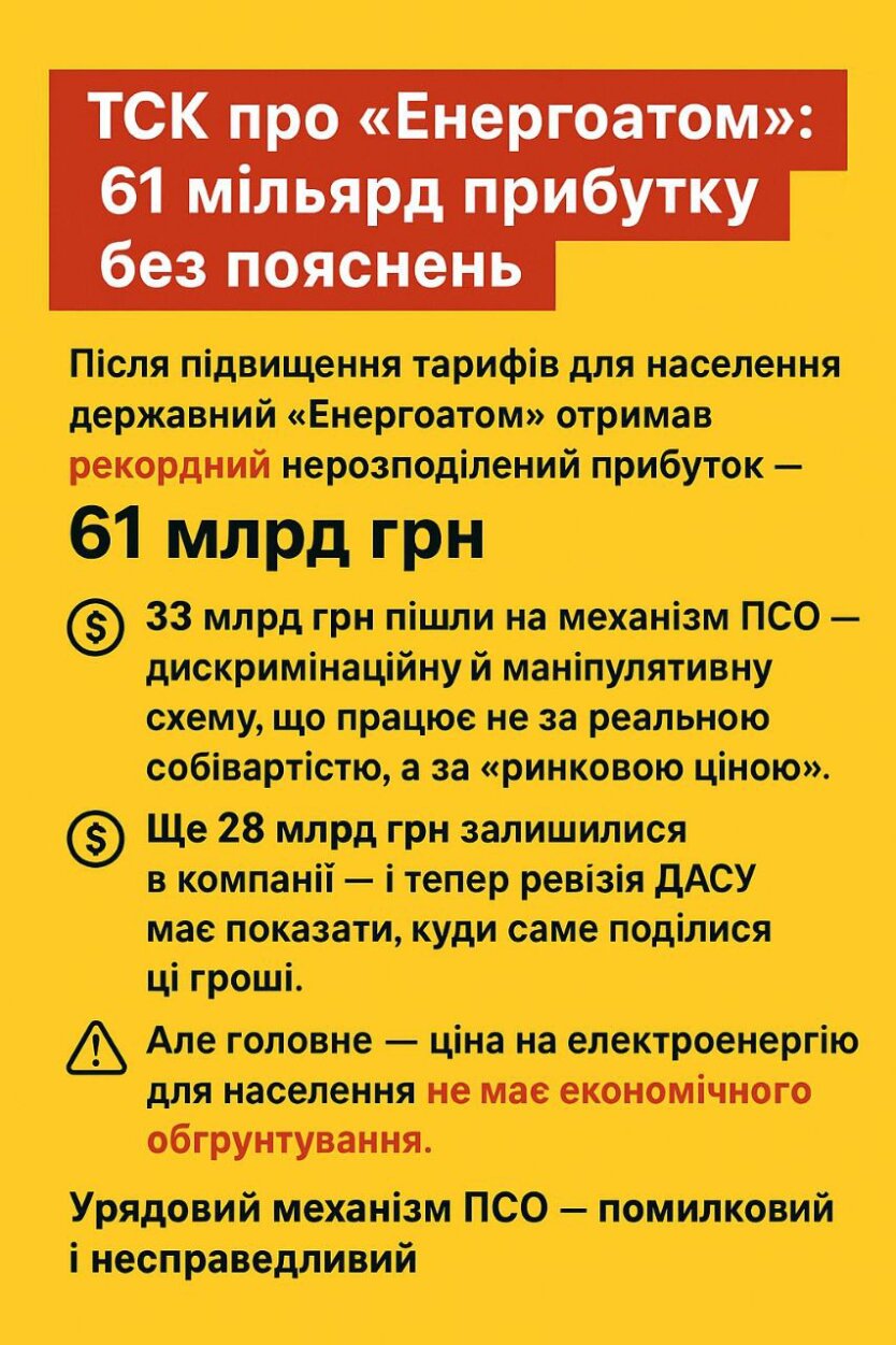 За словами Попенка, ТСК вбачає у цих даних підстави для повного перегляду державної енергетичної політики — зокрема принципів формування ПСО, тарифів і контролю за використанням прибутків державних компаній.