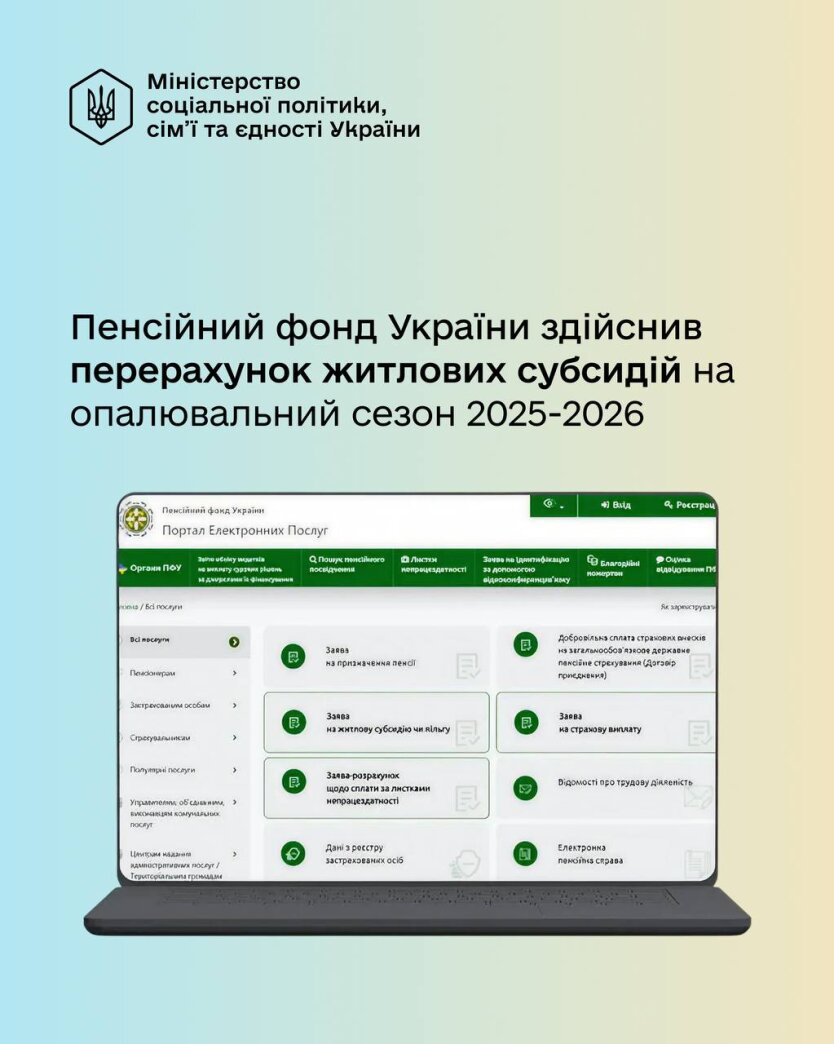 Пенсійний фонд України здійснив перерахунок житлових субсидій на опалювальний сезон 2025-2026.