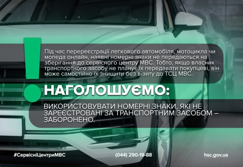 Якщо ви продаєте транспортний засіб через Дію онлайн, старі номерні знаки не потрібно здавати на зберігання до сервісного центру МВС. Власник сам вирішує: передати табличку новому власнику чи знищити її самостійно. Але важливо пам’ятати: використовувати номери, які не зареєстровані за автомобілем, заборонено законом.