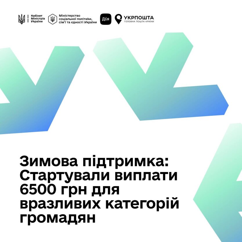 Почалися перші виплати одноразової допомоги 6500 гривень у межах урядової програми "Зимова підтримка" для найбільш вразливих категорій громадян.