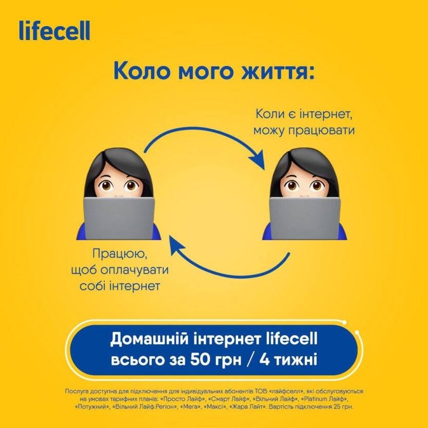 Оператор lifecell повідомив про спеціальну пропозицію для підключення послуги "Домашній інтернет lifecell" - за 50 грн на 4 тижні. У компанії зазначили, що послугу можна оформити як додаток до мобільного тарифу, а списання оплати відбувається автоматично разом із платою за 4-тижневий пакет мобільного зв’язку.