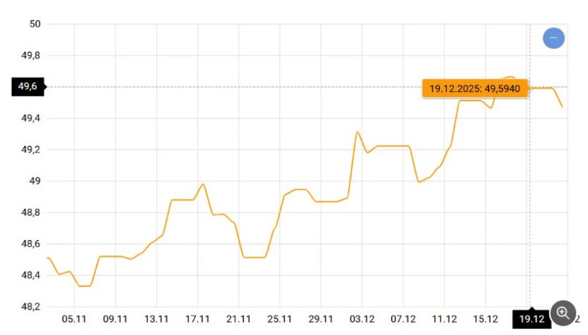 Протягом грудня офіційний курс гривні до євро тримався у діапазоні 48,99-49,66 грн. Співвідношення в основній валютній парі змістилося з 1,16 до 1,17 євро/долар, що вплинуло на ринкову реакцію. Якщо ситуація залишиться стабільною, на наступному тижні коливання будуть схожими.
