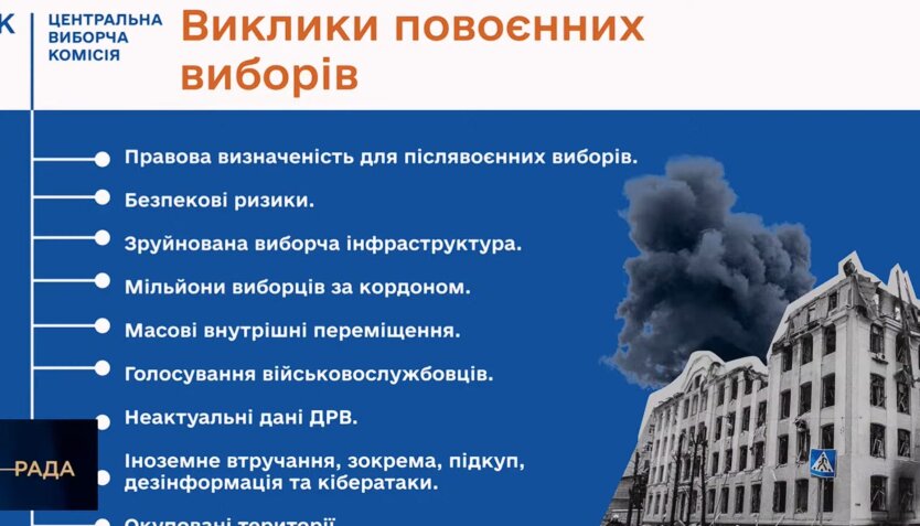 Центральна виборча комісія (ЦВК) України озвучила ключові проблеми, які стоять на шляху проведення перших повоєнних виборів.