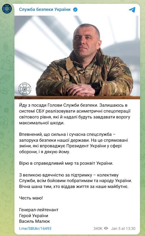 Василь Малюк офіційно оголосив, що залишає посаду Голови Служби безпеки України. Генерал-лейтенант не йде із силового блоку остаточно, а зосередиться на специфічному напрямку роботи всередині структури.