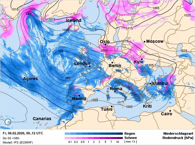 У п'ятницю, 6 лютого, погоду в більшості областей визначатиме циклонічна діяльність. Очікується сніг та мокрий сніг, а у західних та південних регіонах опади перейдуть у дощ. На сході країни істотних опадів не передбачається.