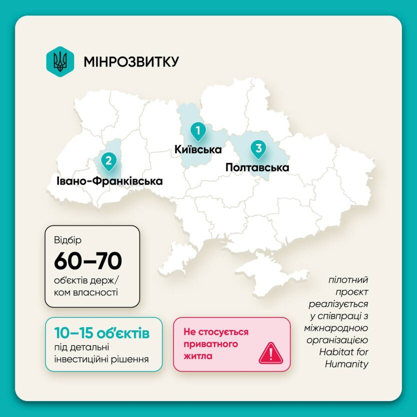 Пілотний етап програми стартує у трьох регіонах: Київській, Івано-Франківській та Полтавській областях.